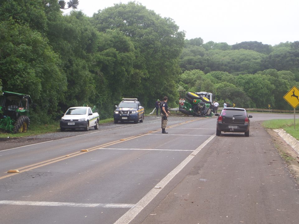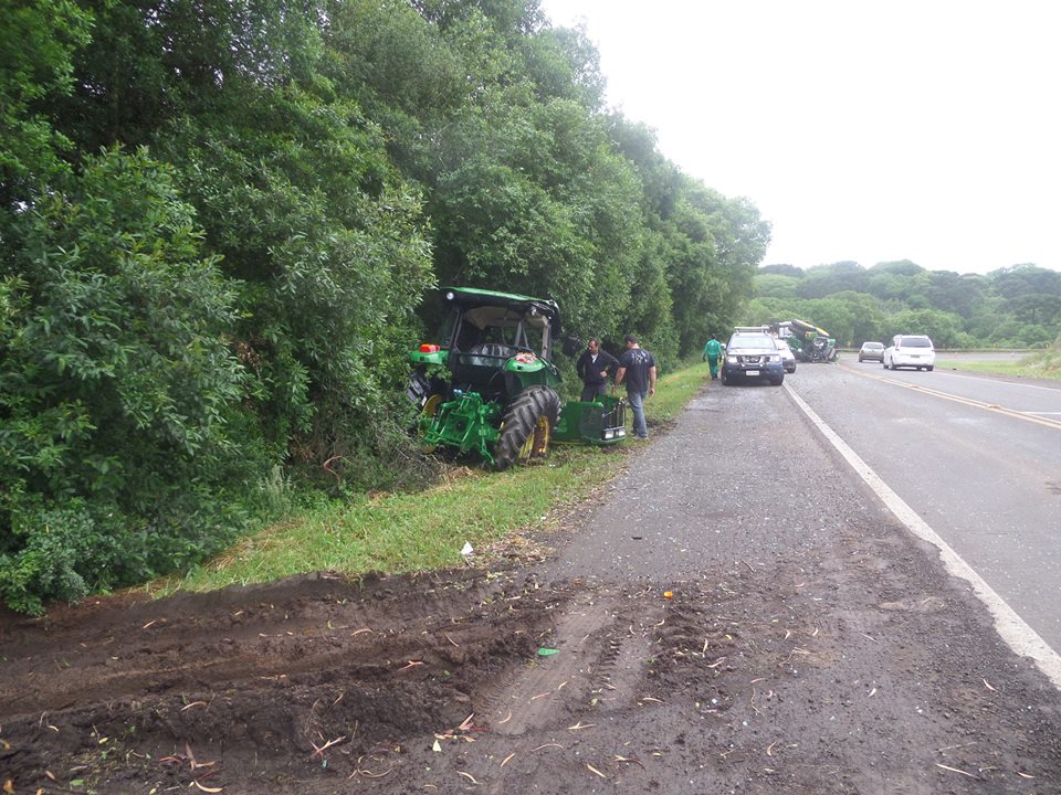 Um pouco antes da curva o primeiro trator já havia caído e o segundo despencou logo em seguida. Somente danos nos tratores, o motorista nada sofreu. A passagem de veículos ficou em meia pista e a PRF esteve no local orientando o trânsito até a retirada dos dois tratores.