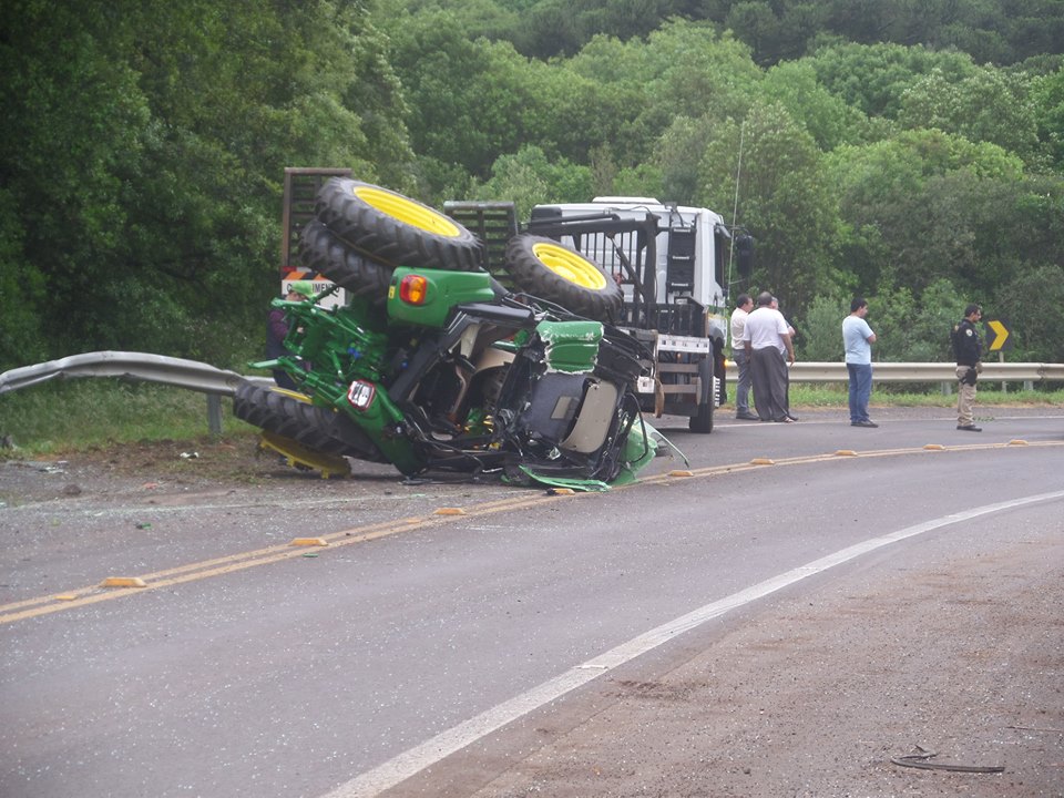 Por volta de 9h da manhã deste sábado (28), dois tratores que estavam sendo transportados para uma revenda em Vacaria, caíram de cima de um caminhão. O acidente aconteceu na curva do Rio Maria Inácia na BR 285 próximo a Vacaria.